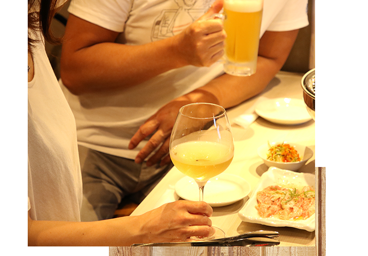 鶏焼肉と相性の良い生ビールはもちろん、焼酎やワインなど、幅広いドリンクをご用意しています。